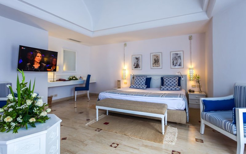 Felszereltség: A hangulatos szálloda hangulatos légkörrel és nagyon jó kiszolgálással a legjobb feltételeket kínálja egy pihentető nyaraláshoz, csendes környezetben. A mór építészeti stílusú teraszos bungalók összesen 145 szobát kínálnak, és harmonikusan illeszkednek a kiterjedt kertekbe. A gondozott, parkos kert csodálatos, idős fákkal elegendő teret ad az egyéniségnek és időzéshez hív. A hot spot az elegáns „Infinity Lounge”, amely Tunéziában egyedülálló, fantasztikus kilátással a medencére és a tengerre. A további szolgáltatások közé tartozik az elegáns előcsarnok recepcióval, bár, kényelmes ülősarok és internetsarok (beleértve). Modern kialakítású főétterem (nemdohányzó étterem), stílusosan berendezett à la carte étterem nagy terasszal a medence mellett, thai à la carte étterem és grillétterem a tengerparton nagy terasszal biztosítják a kulináris jólétet. kilátással halakkal és grillezett ételekkel (csak a nyári hónapokban tart nyitva). A gyönyörű, gondozott kertben 2 édesvizű medence található. Medence külön gyermekmedencével és napozóterasszal (a medencénél nyugágyak, napernyők és strandtörölközők, a strandon kérésre. Fűtött beltéri medence és gyógyfürdő teszi teljessé a kényeztető programot.