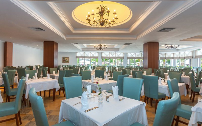 All Inclusive: Minden étkezés svédasztalos. Korai reggeli 6:00 és 8:00 óra között, reggeli 8:00 és 10:00 óra között, késői reggeli 10:00 és 11:00 óra között, ebéd 12:30 és 14:00 óra között, vacsora pedig 18:30 és 21:00 óra között (két időpontban lehet étkezni: 18:30 és 19:45 között vagy 20:15 és 21:30 között). Harapnivalók 11:00 és 12:00, valamint 13:00 és 16:00 óra között kaphatók. Süteményszünet 16:00 és 17:00 óra között. Helyi alkoholos és alkoholmentes italok 8:00 és éjfél között (május-október) vagy 8:00 és 23:00 óra között (november-április) kaphatók a bárban nyitvatartási időben. Hetente egy à la carte vacsora benne foglaltatik az árban (foglalás szükséges; minimum 5 éjszakás tartózkodás).
