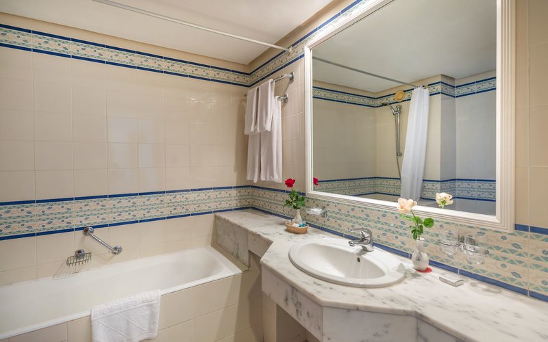 Felszereltség: Ez a családbarát szálloda 460 szobával, recepcióval, különféle éttermekkel és bárokkal, éjszakai klubbal, butikkal, ajándékbolttal, bazárral és fedett úszómedencével (novembertől májusig tart nyitva) várja vendégeit. A tágas kertrészben két úszómedence található külön gyermekmedencével (napozóágyak és napernyők ingyenesen állnak rendelkezésre mind a medencénél, mind a strandon), valamint egy napozóterasz nyugágyakkal és medencebárral (május 1-jétől a medence és a strand melletti párnák benne foglaltatnak az árban).