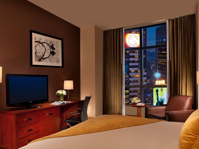Lage & Umgebung Das stilvolle und moderne Hotel hat eine ideale Lage und befindet sich weniger als einen Block vom legendären Times Square entfernt, zwischen der 6th Avenue und dem Broadway. Restaurants, Bars, Einkaufsmöglichkeiten, Diskotheken und öffentliche Verkehrsmittel befinden sich in Hotelnähe.