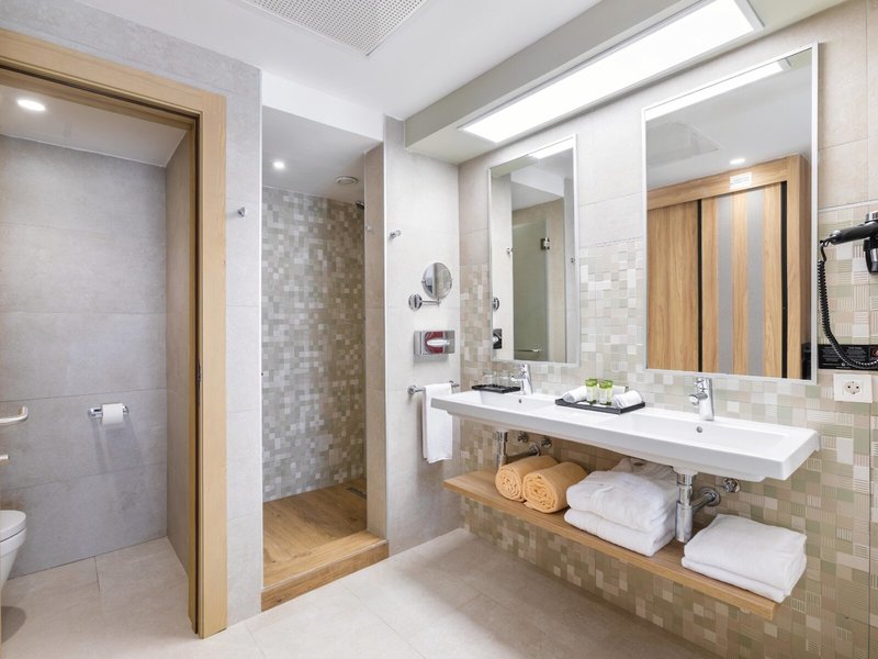 - Kétágyas Standard akadálymentesített (DZX8), Kétágyas szoba, kb. 26 m², Az ilyen típusú szobák száma összesen: 1, Elrendezés: kombinált nappali/hálószoba, 1 franciaágy (180x200cm), Légkondicionáló: központilag szabályozott, Széf: ingyenes, Mennyezeti ventilátor, Italadagoló, Ülősarok, Kanapé, Vízforraló, Minibár, Telefon, Internet: Wi-Fi: ingyenes, Televízió: Műholdas TV, Zuhanyzó, Külön WC, Hajszárító, Erkély vagy terasz: ülősarokkal