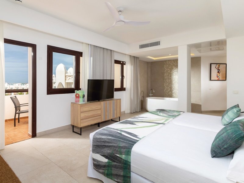 - Junior Suite (JSX2), Juniorsuite, ca. 60 m², Gesamtanzahl der Räume in diesem Zimmertyp: 1, Aufteilung wie folgt: kombiniertes Wohn-/Schlafzimmer, 2 Einzelbetten (110x200cm), Klimaanlage: zentral gesteuert, Safe: ohne Gebühr, Deckenventilator, Getränkespender, Sofa, Wasserkocher, Minibar, Telefon, Internet: WLAN/WiFi: ohne Gebühr, Fernseher: Sat-TV, separate Dusche, Badewanne, WC, Bademantel, Föhn, Balkon oder Terrasse: mit Sitzgelegenheit